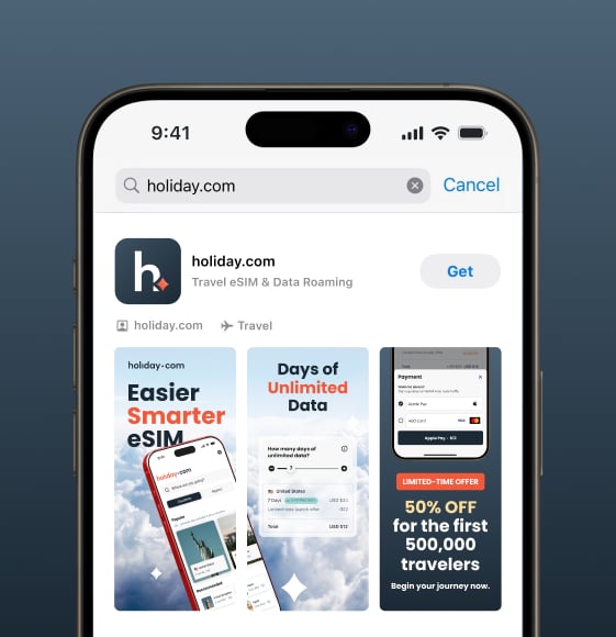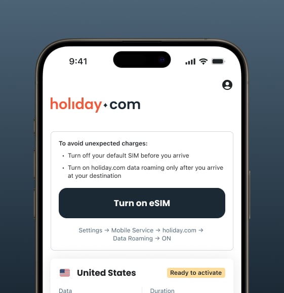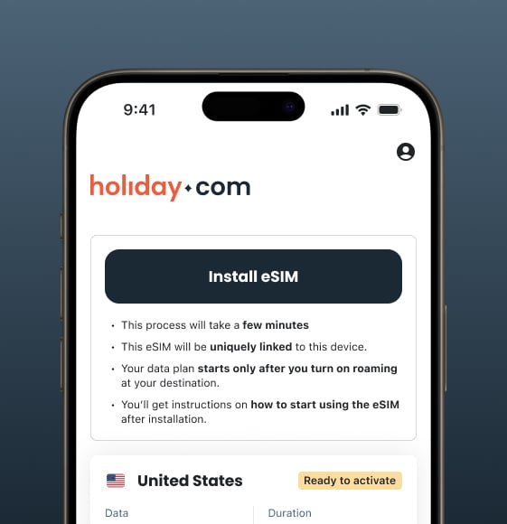 É um cartão SIM integrado que permite usar diferentes operadoras de dados móveis sem precisar substituir cartões SIM físicos. Ao viajar para o exterior, um eSIM da holiday.com conecta você às redes móveis locais, permitindo acesso instantâneo à internet sem tarifas de roaming. O eSIM da holiday.com é global e ilimitado, o que significa que você só precisa instalá-lo uma vez e recarregar quando viajar para obter acesso a dados ilimitados em 150+ destinos. Não é preciso monitorar o consumo de dados nem alternar entre vários eSIMs. -